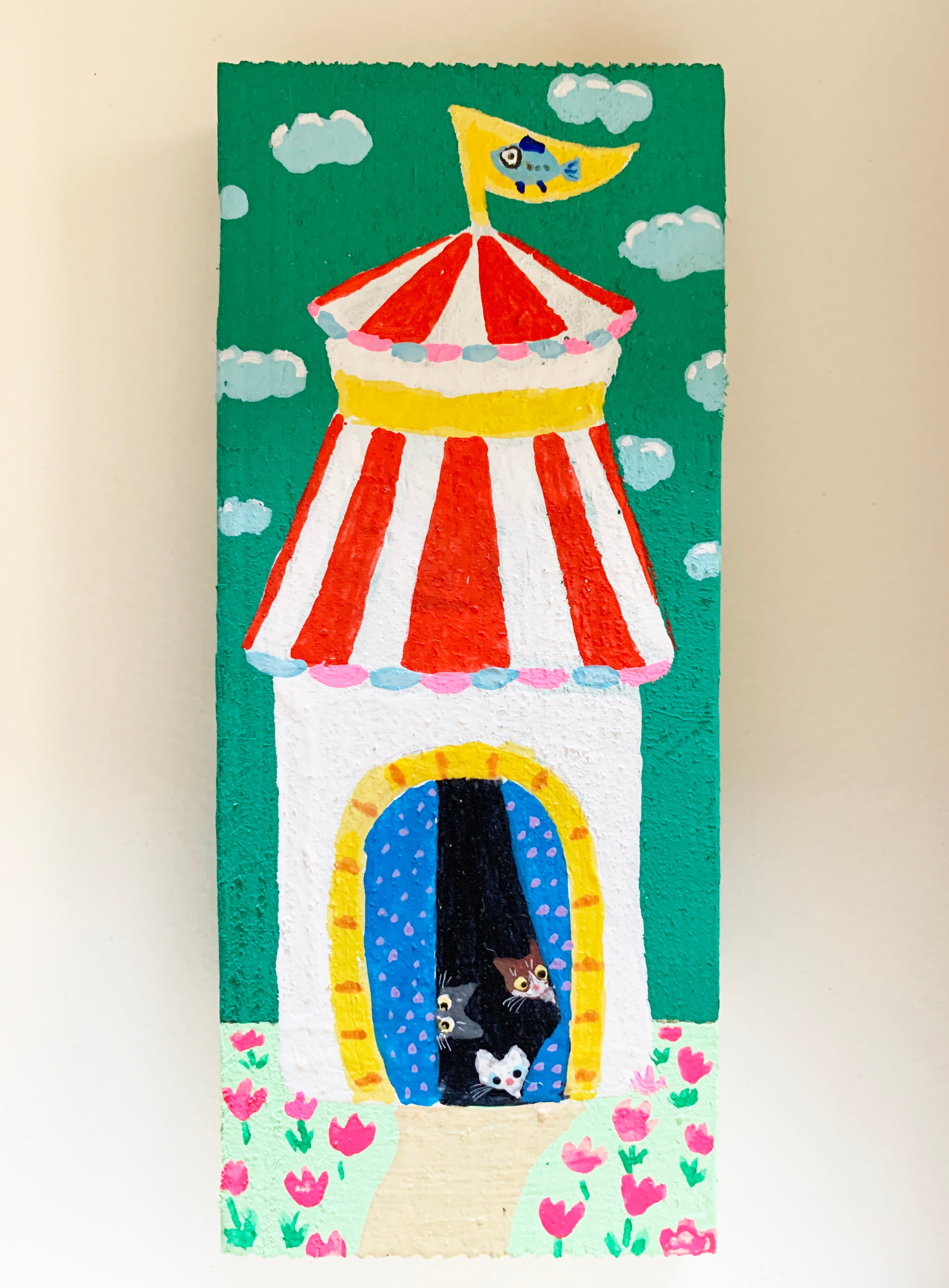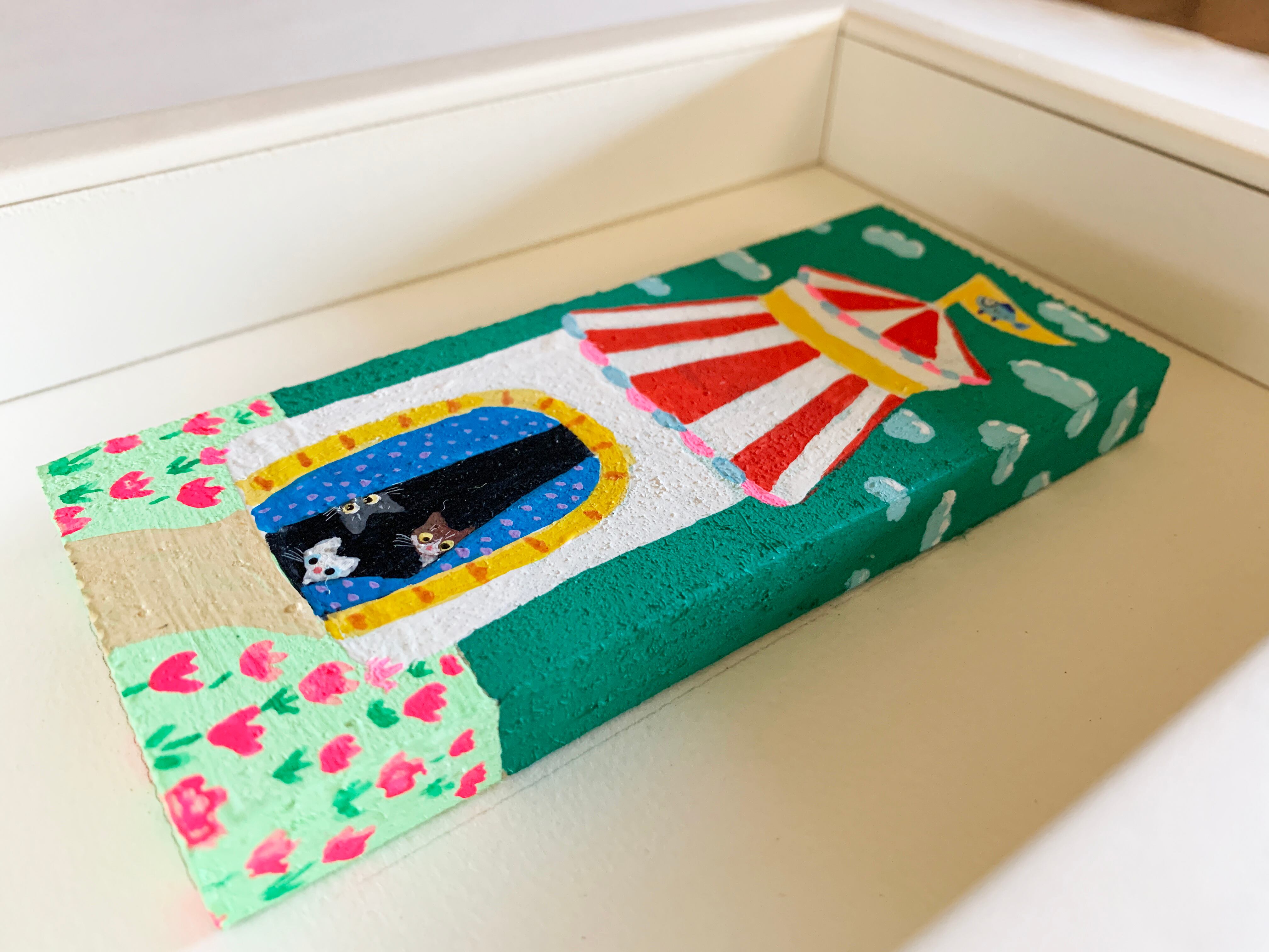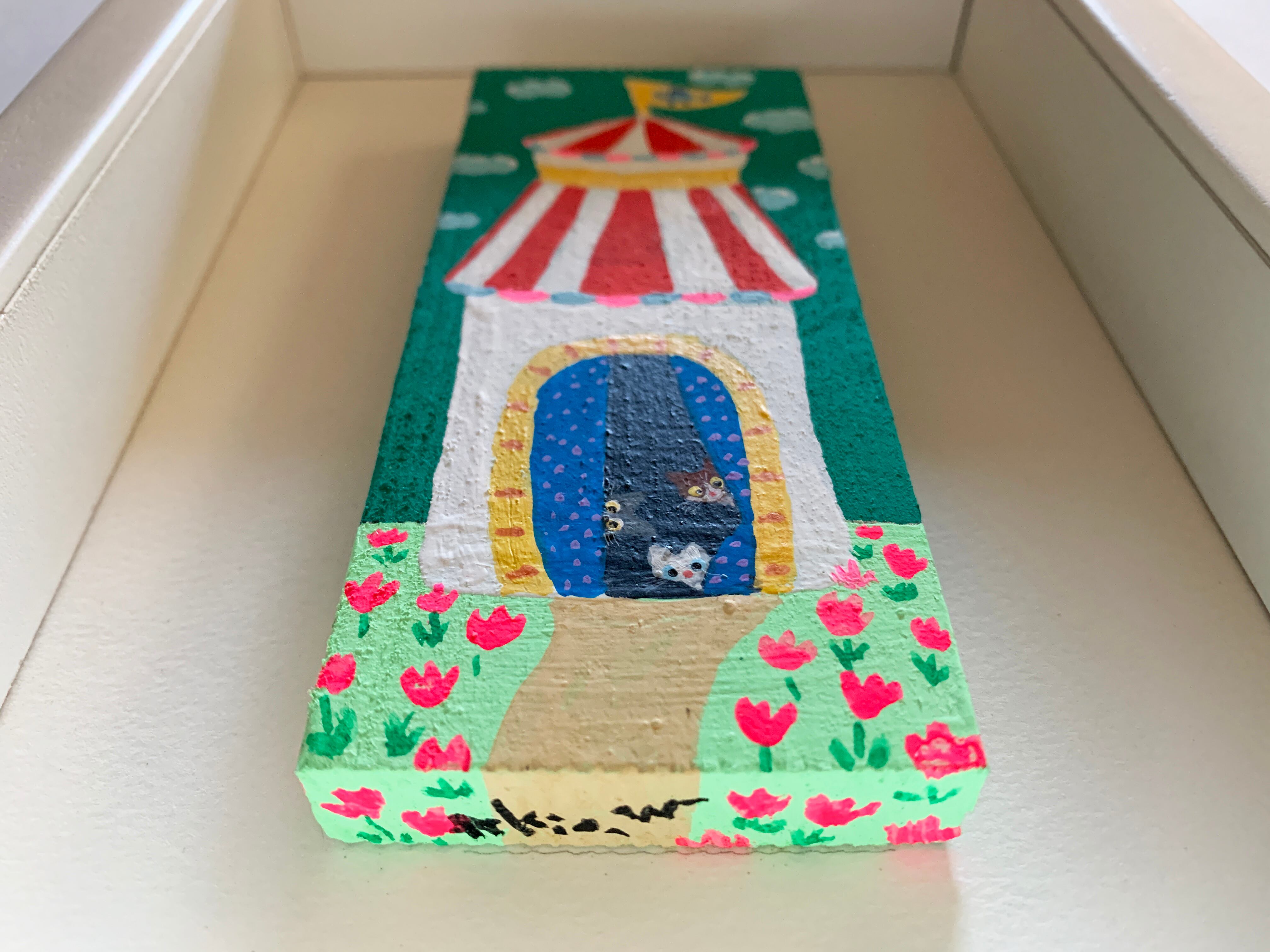 ・木片に直接絵を描き、それを額の中に飾った原画になります。