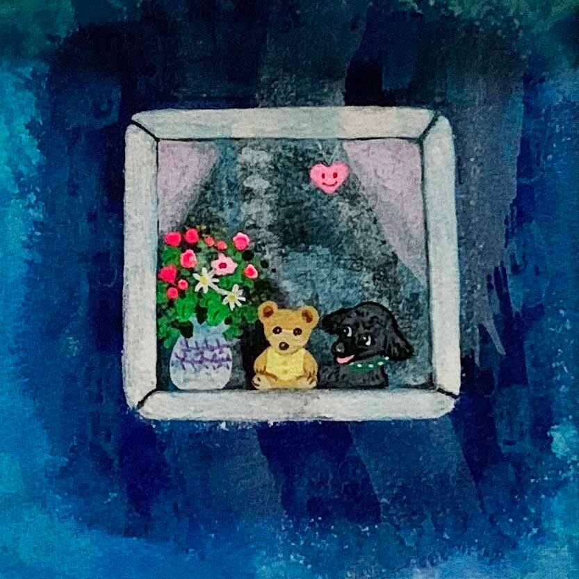 ・絵は全て額装でお渡しいたします。こちらの額は脚付きではありません。